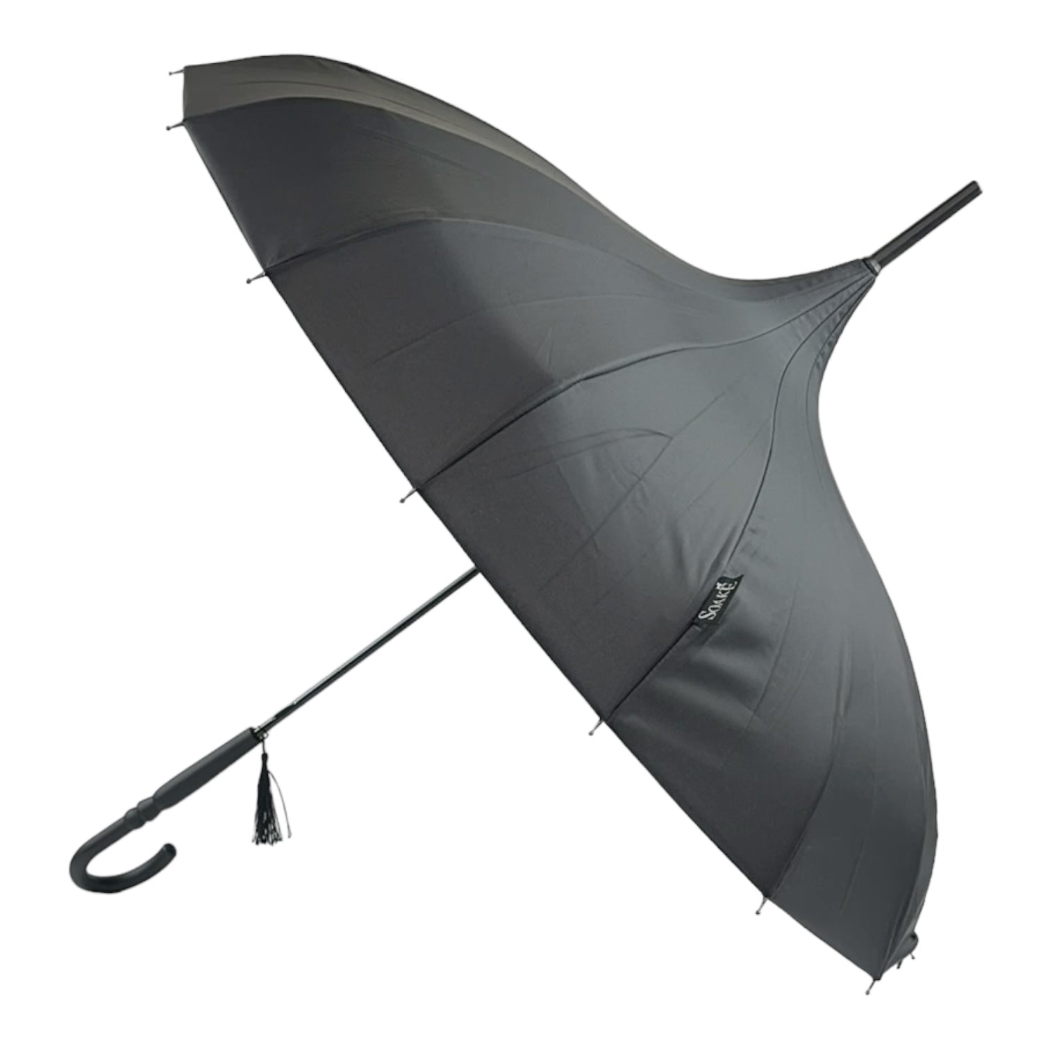 Stay Stylish and Dry with the Soake Boutique Classic Pagoda Umbrella in Black and Cream